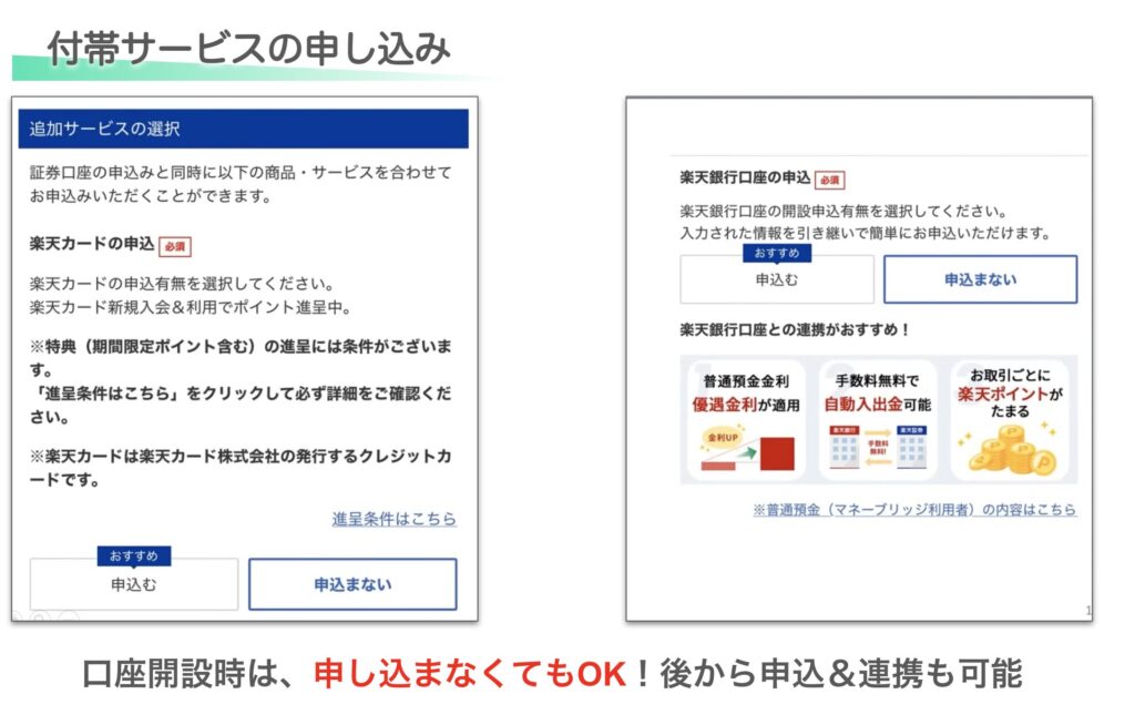 楽天カードでつみたて設定や、楽天銀行口座との連携で得られるメリットがあるので、後で設定するのがおすすめ!