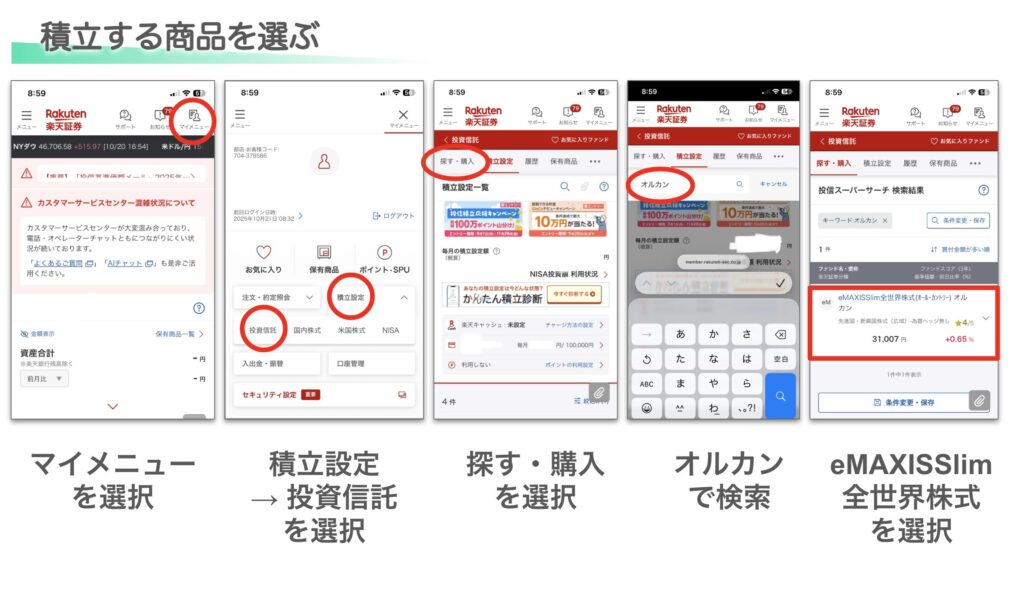 - 積立設定は「全世界株式」に「月1万円」が最初の目標