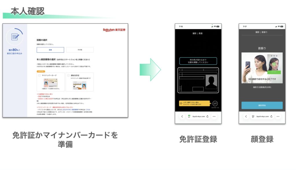スマートフォンで本人確認書類と顔写真を撮影して提出します。