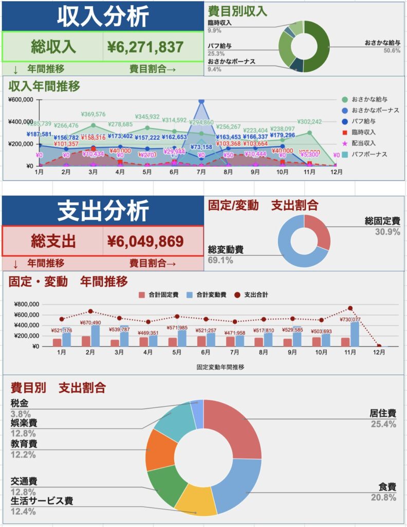 おさかな家の毎月の実践ログはおさかな家の家計簿公開まとめからもたどれます。リアル家計簿と合わせて参考にしてください。